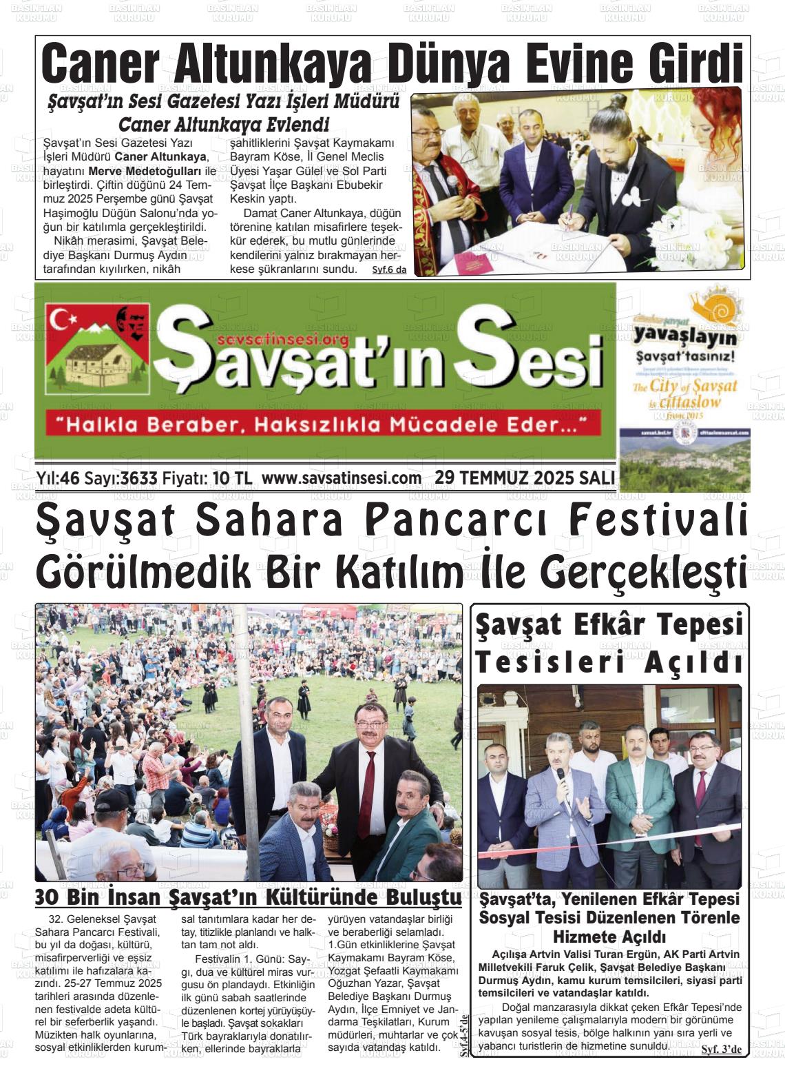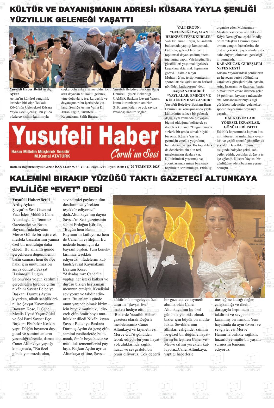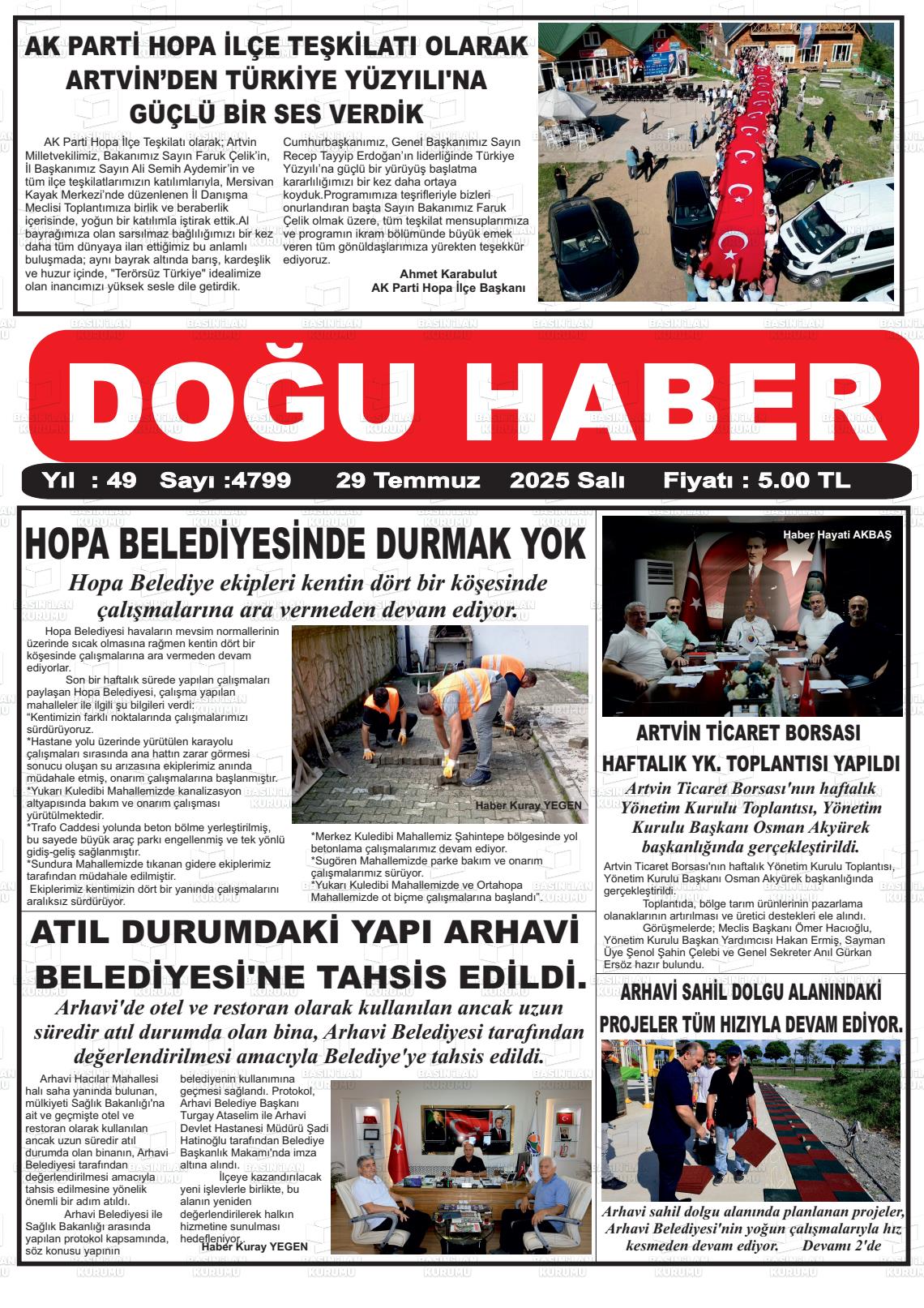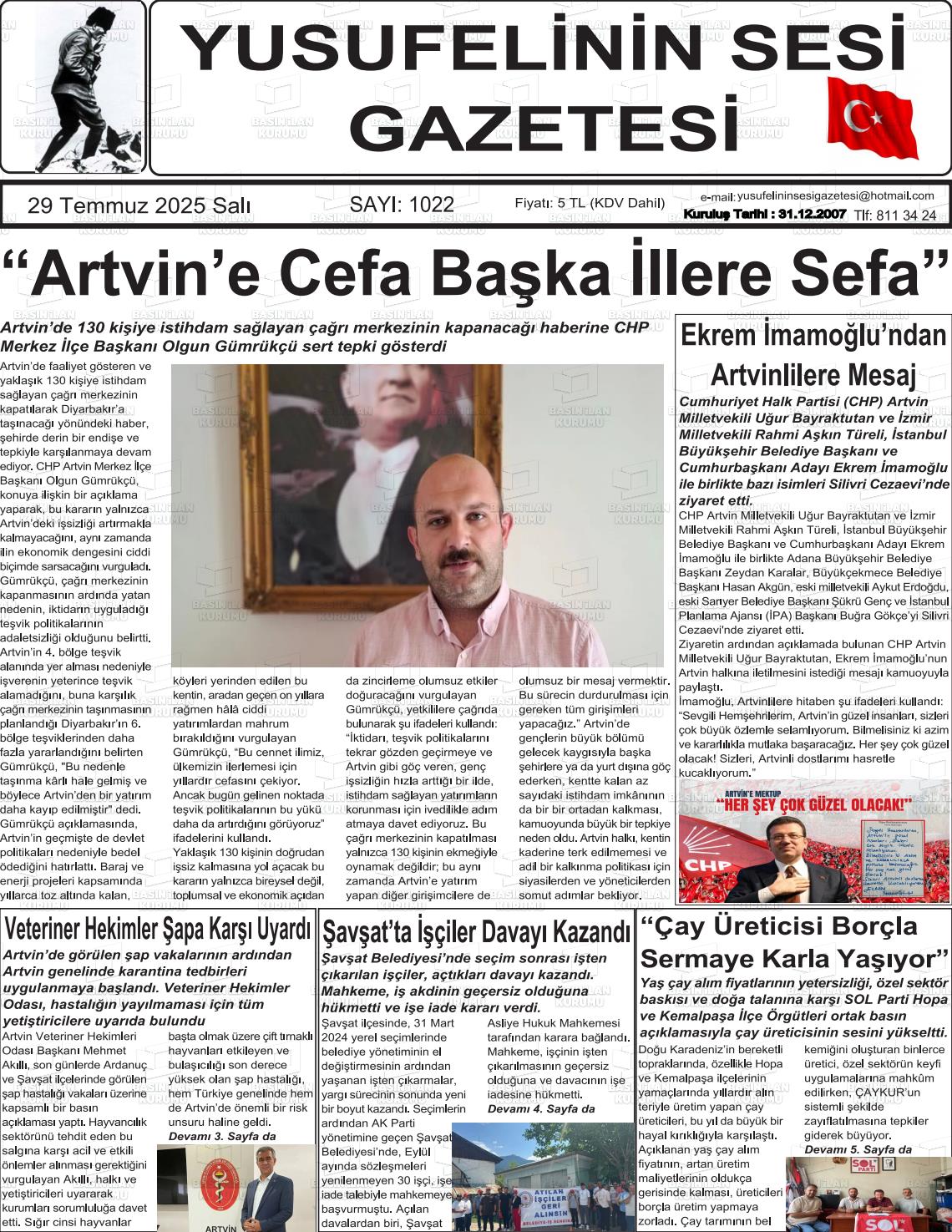 Artvİn Yerel Gazeteleri 07 Kasım 2025, Cuma Günü Manşeti