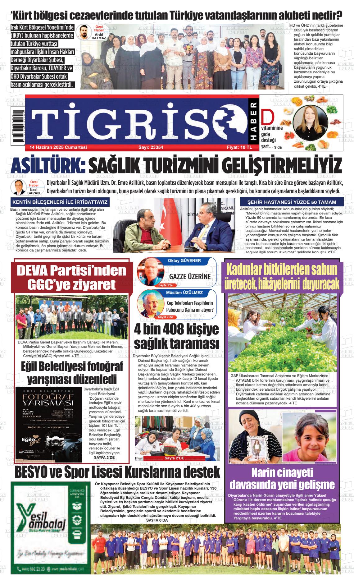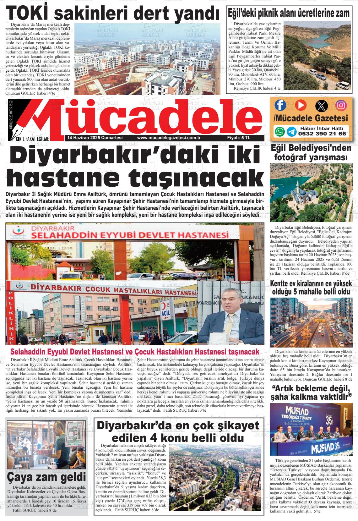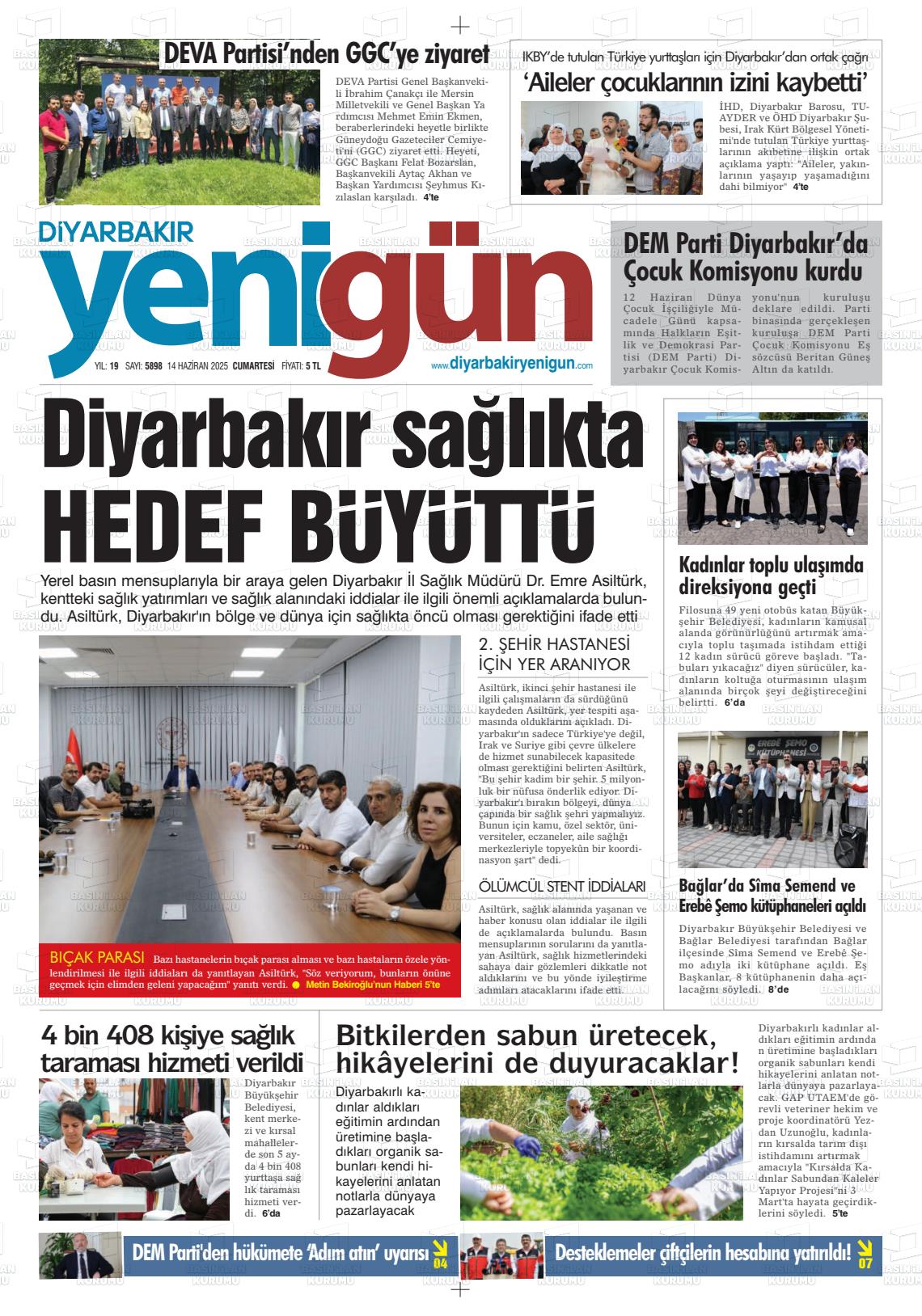 Dİyarbakır Yerel Gazeteleri 07 Kasım 2025, Cuma Günü Manşeti