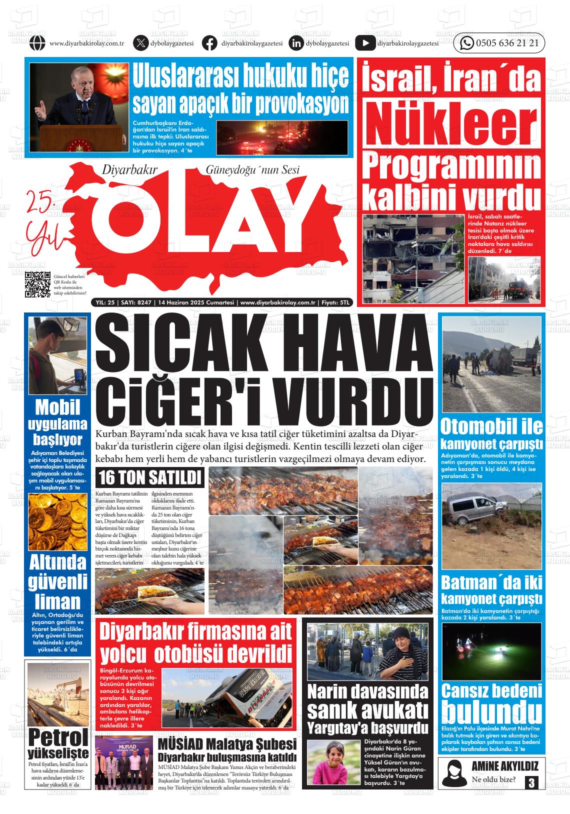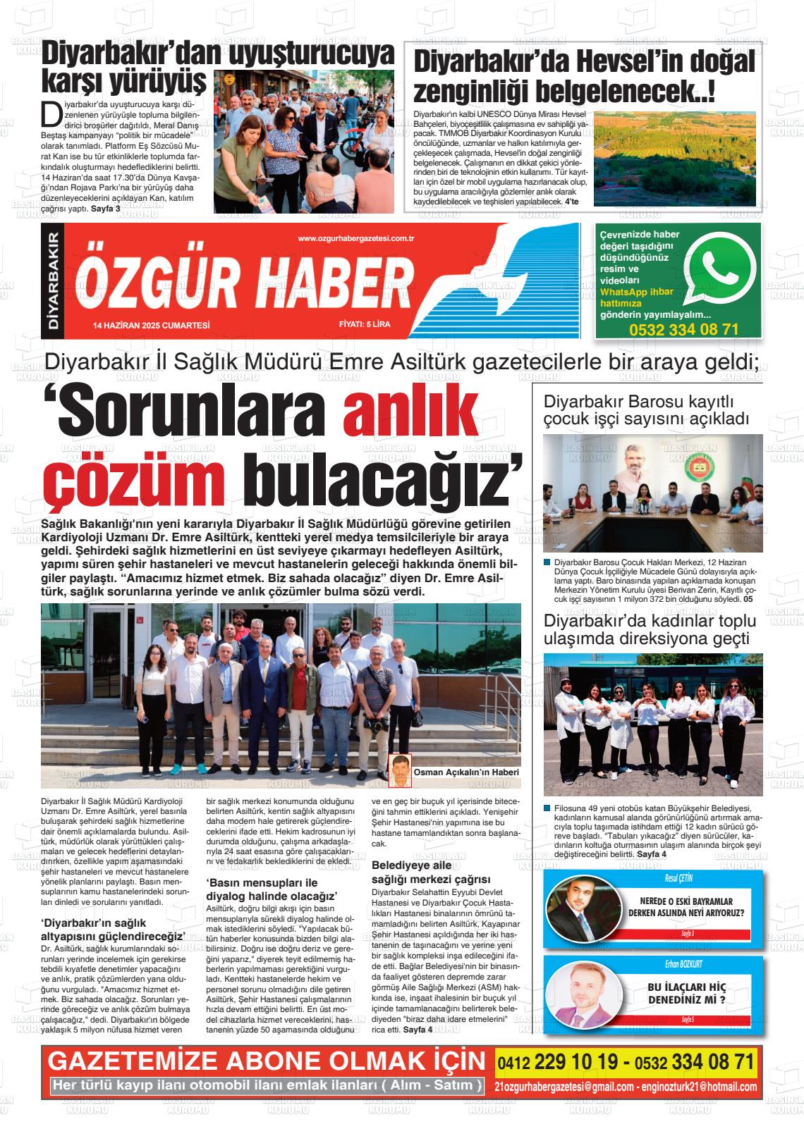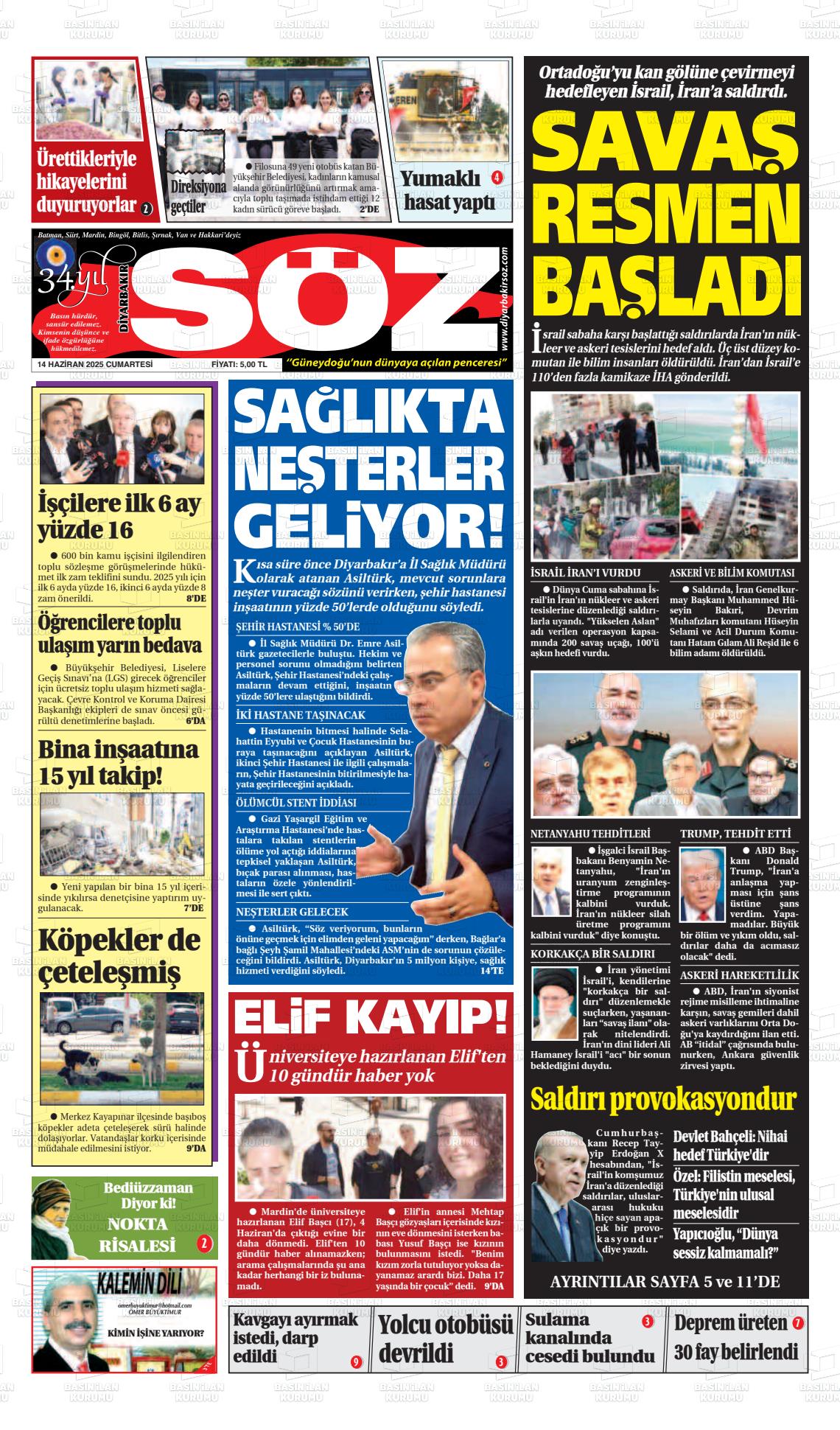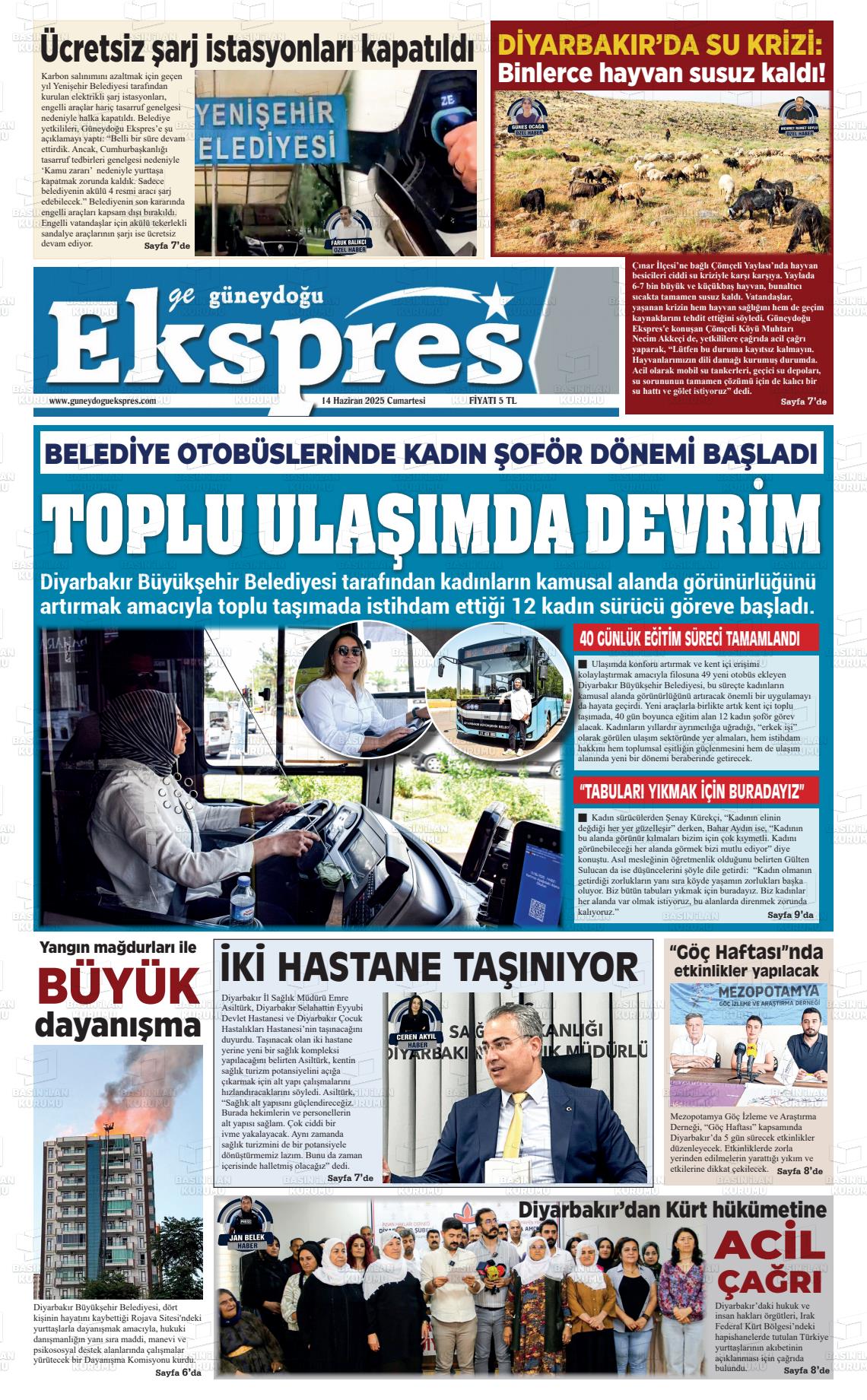 Dİyarbakır Yerel Gazeteleri 07 Kasım 2025, Cuma Günü Manşeti