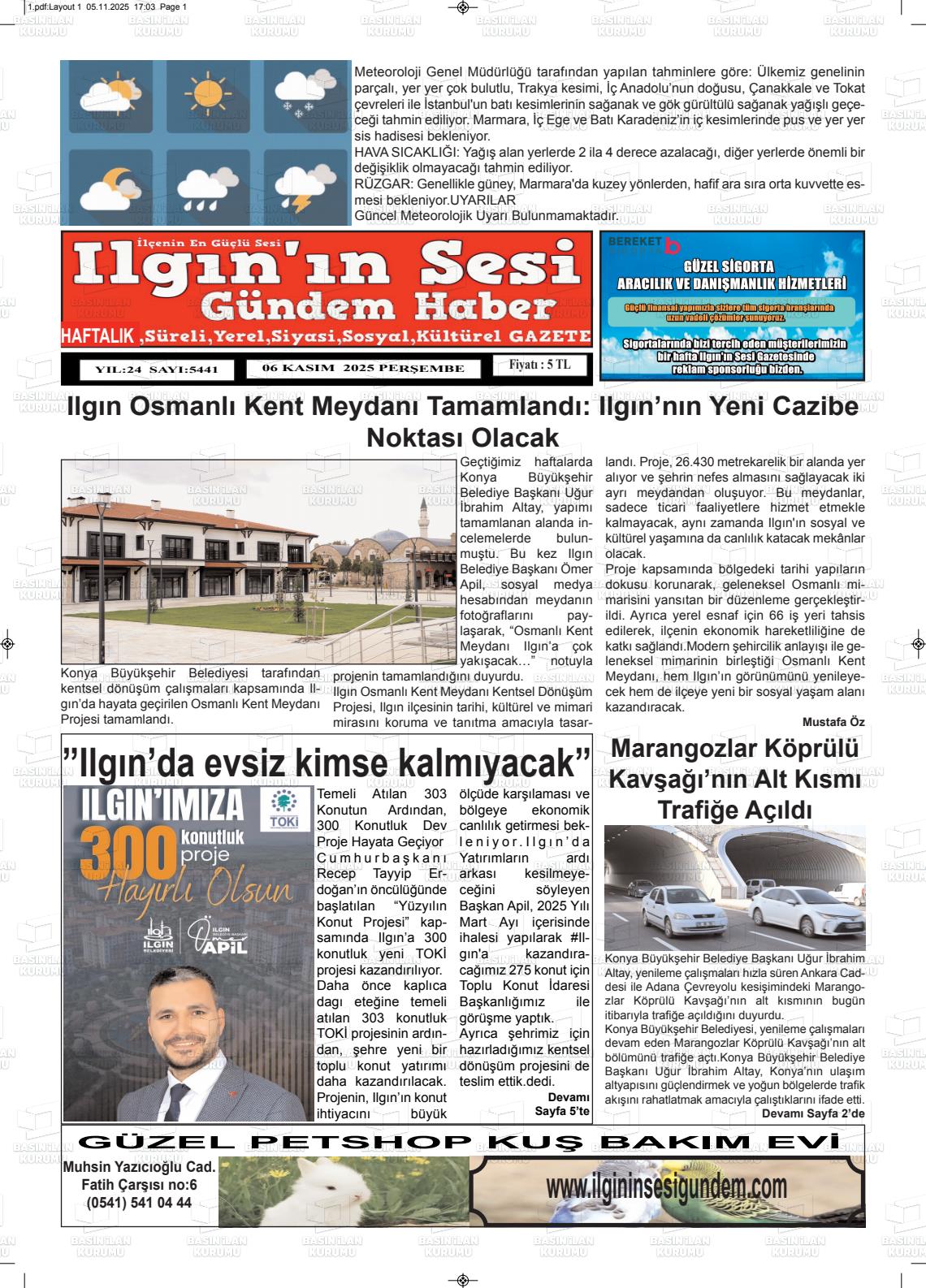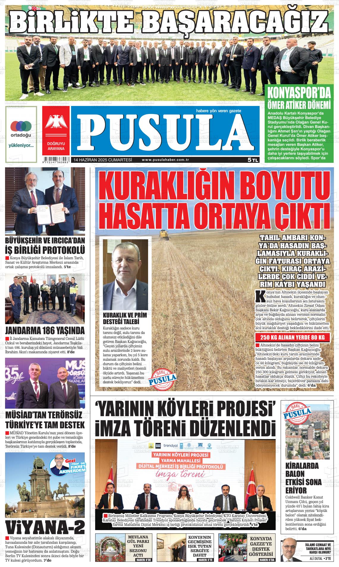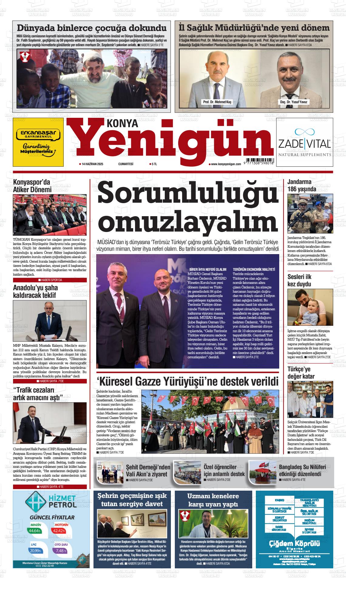 Konya Yerel Gazeteleri 07 Kasım 2025, Cuma Günü Manşeti