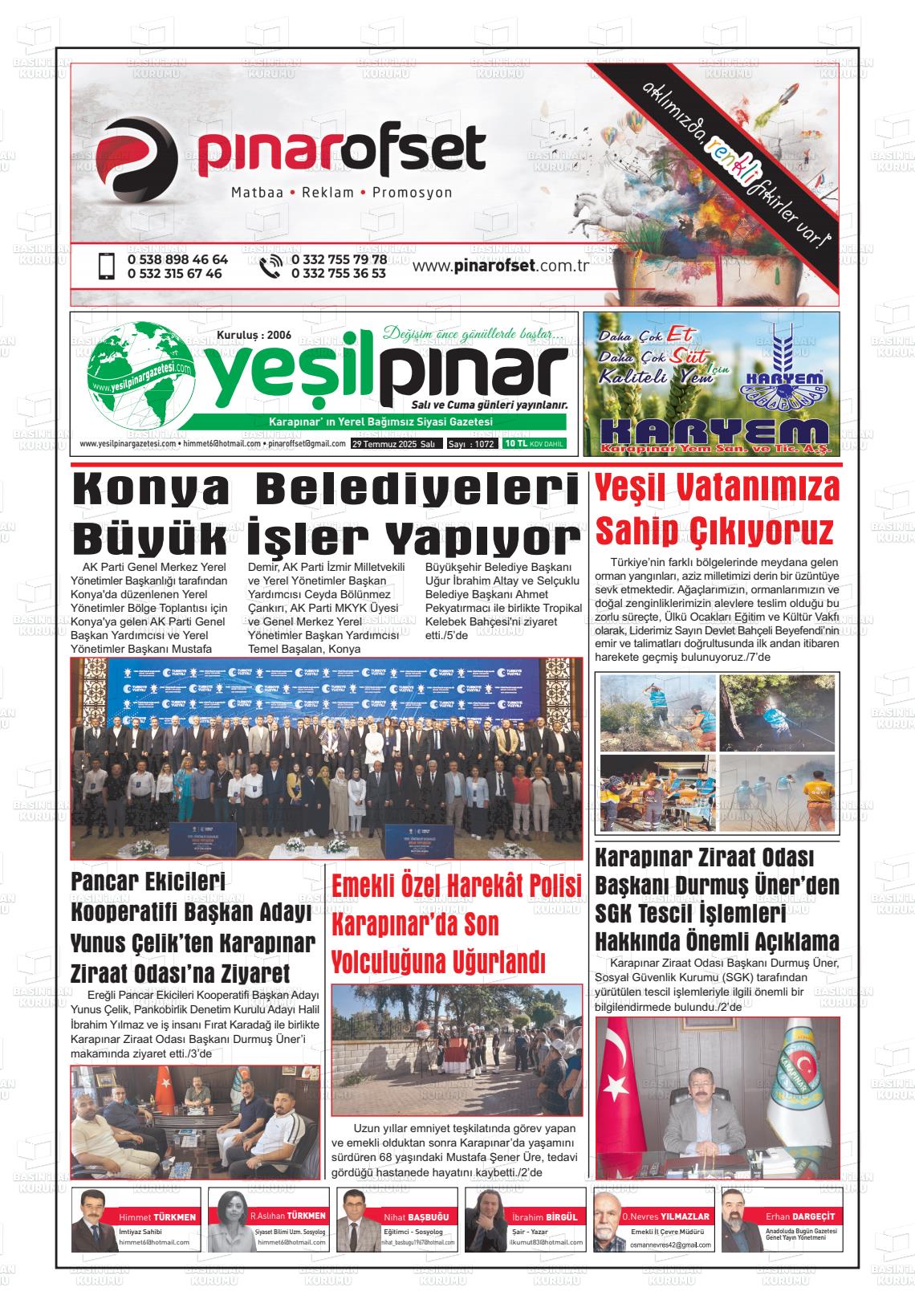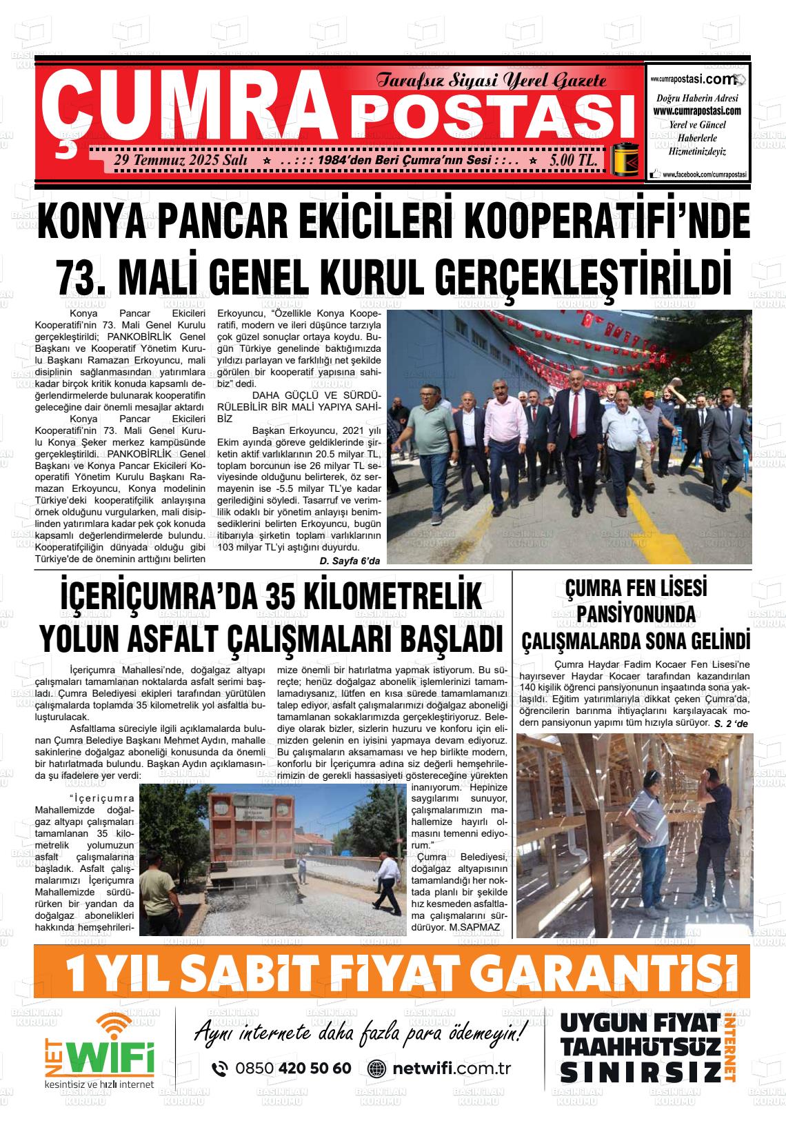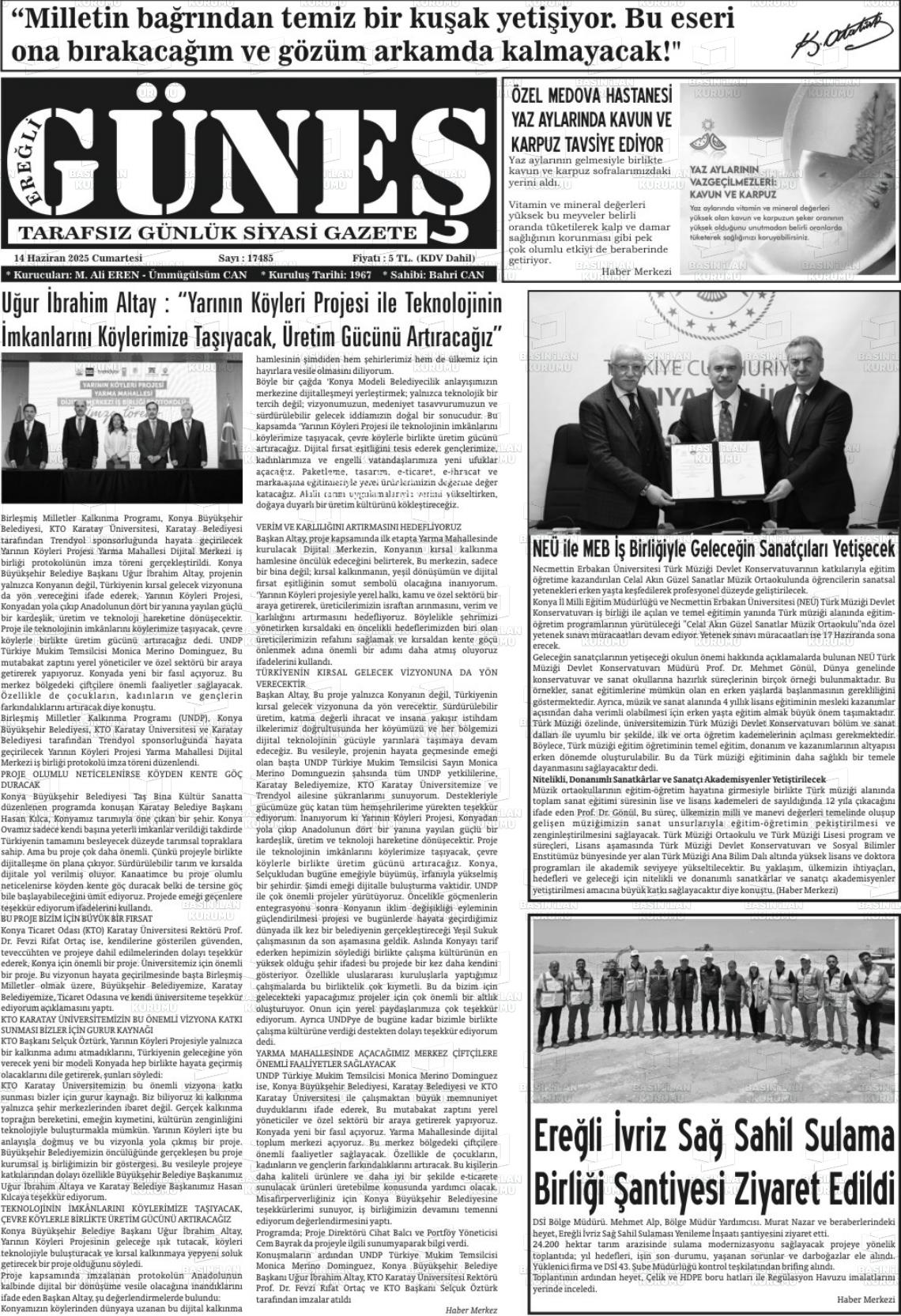 Konya Yerel Gazeteleri 07 Kasım 2025, Cuma Günü Manşeti