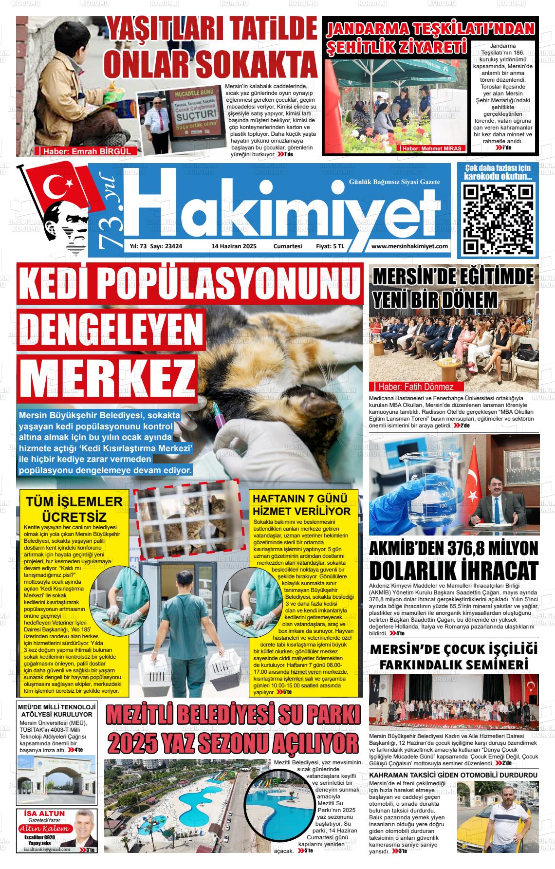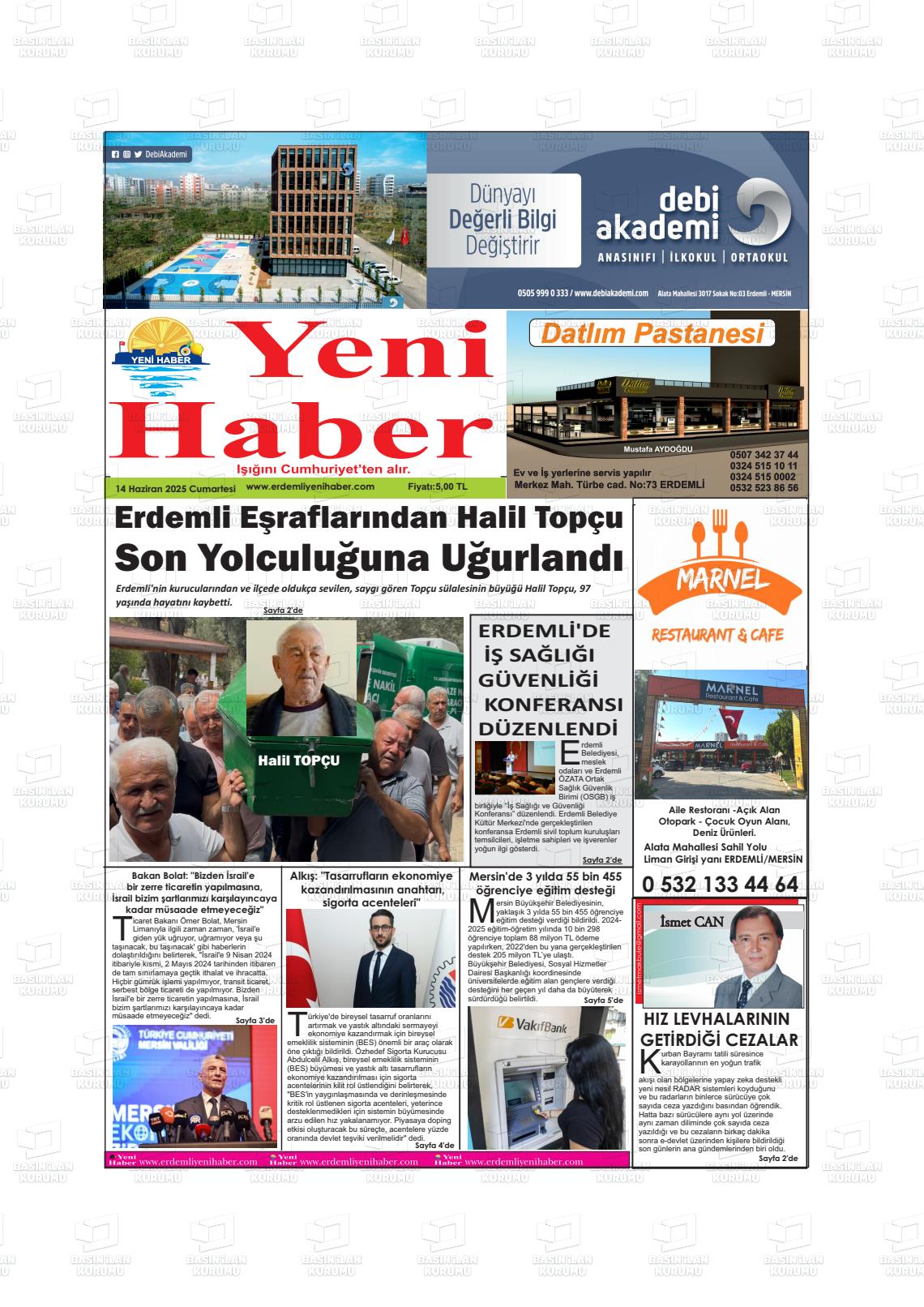 Mersİn Yerel Gazeteleri 07 Kasım 2025, Cuma Günü Manşeti