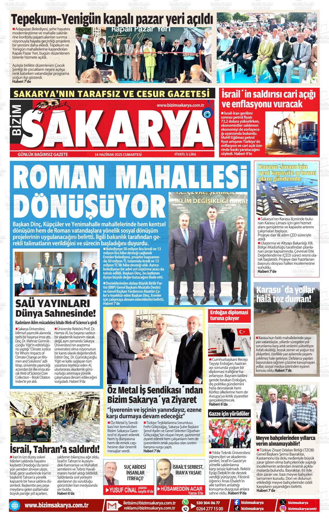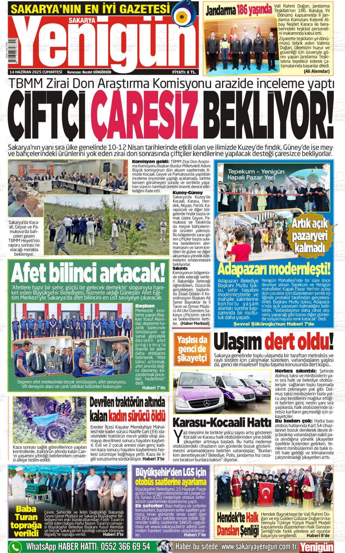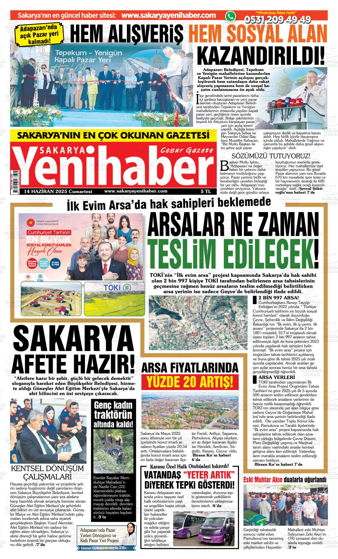 Sakarya Yerel Gazeteleri 07 Kasım 2025, Cuma Günü Manşeti