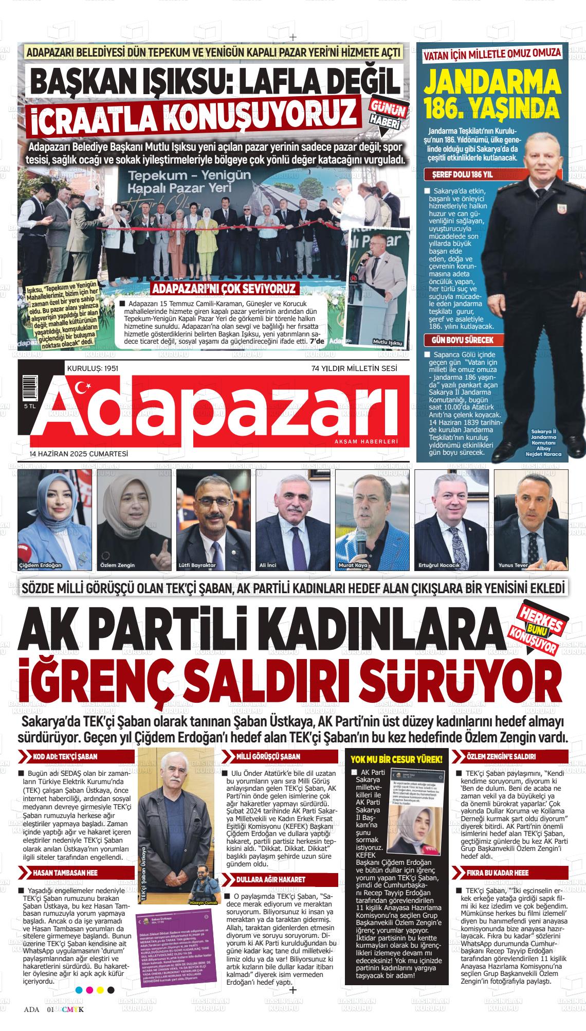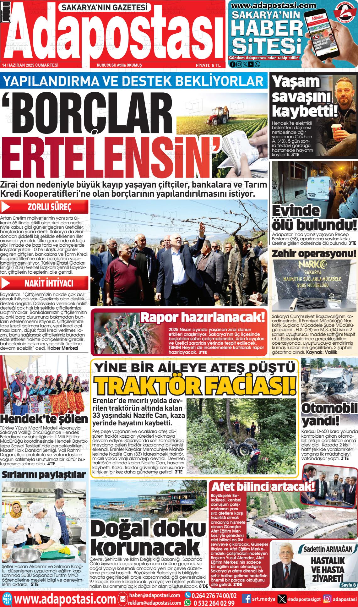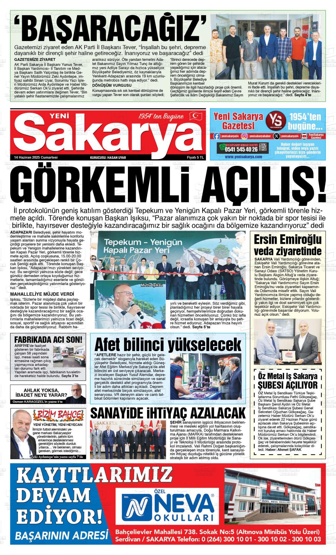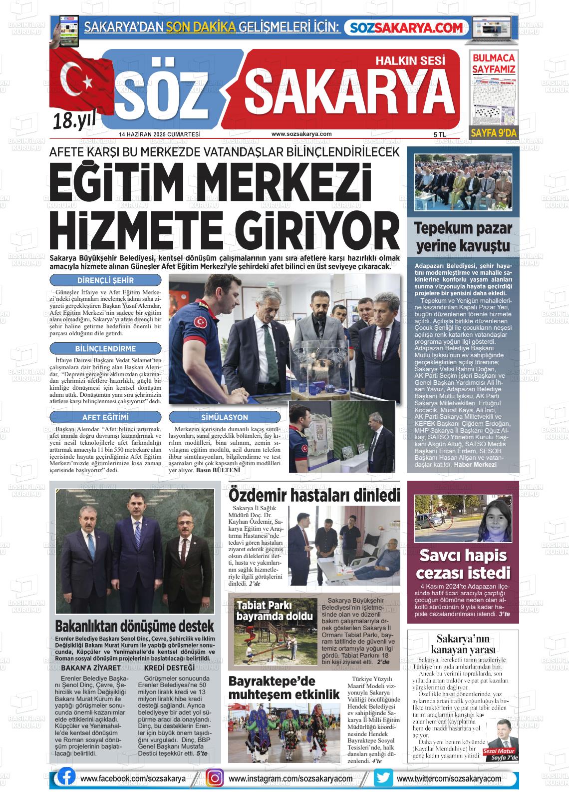 Sakarya Yerel Gazeteleri 07 Kasım 2025, Cuma Günü Manşeti